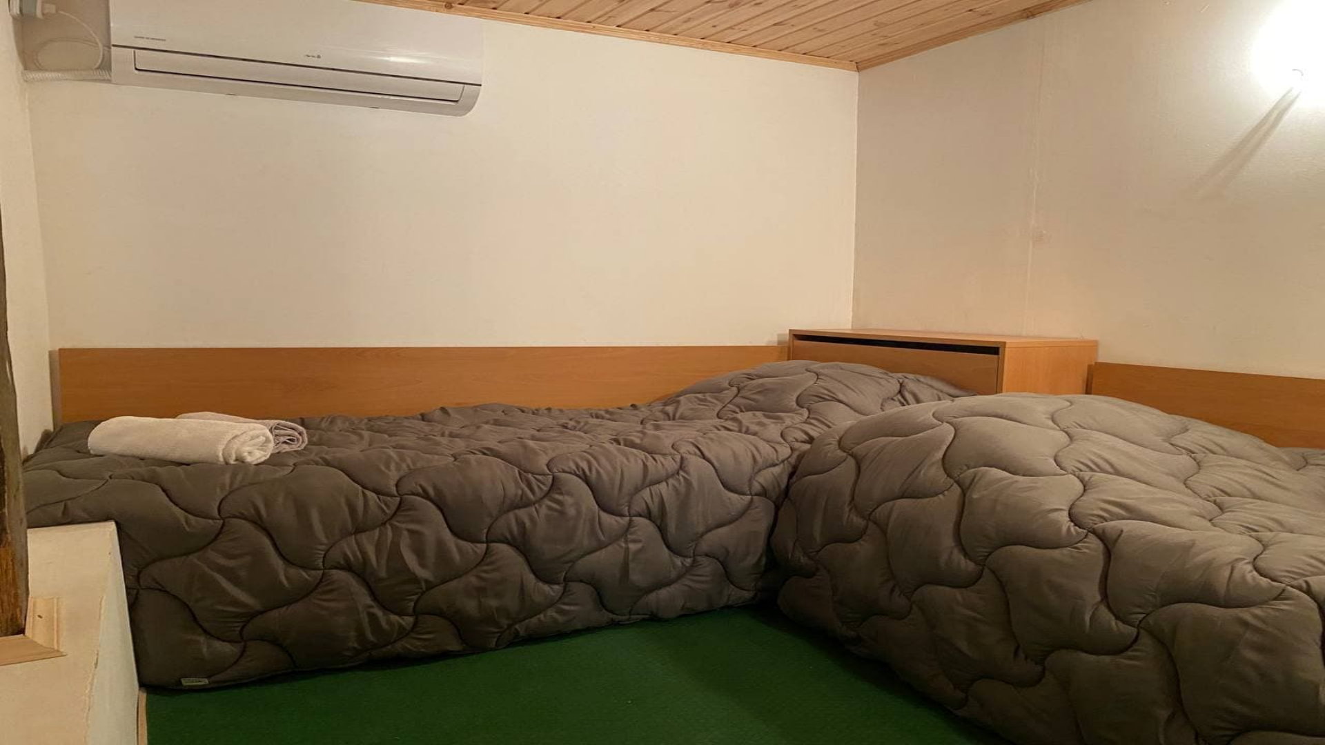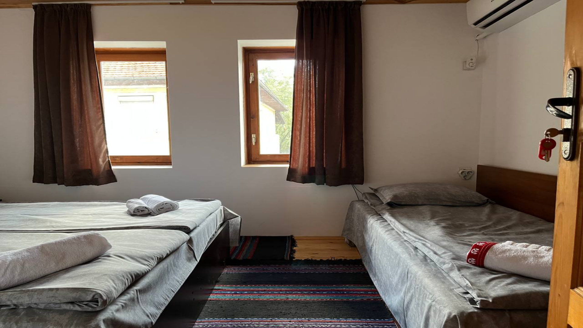 Стаята е на втори етаж с двойно легло, климатик, телевизор, интернет WiFi/LAN.